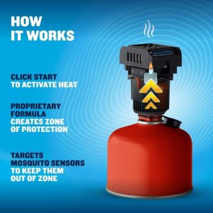 CONTINUOUS OUTDOOR PROTECTION: The device delivers continuous outdoor protection powered by a camping fuel canister (not included). Must be pressurized self-sealing canister (70% Butane/30% Propane).