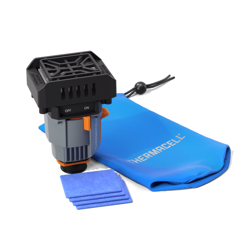 Thermacell’s Backpacker Repeller requires a camping gas canister (not included). Allow gas to flow for 5 seconds before clicking the piezo ignitor, and Only compatible with valves designed to the EN417 specification.