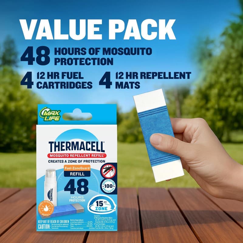 Max Life Mats last 3X longer than original Thermacell mats, so you replace mats less frequently and run it overnight.